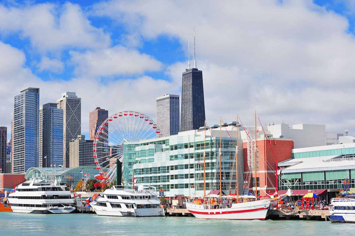 Một trong những điểm đến nổi tiếng nhất Chicago, Navy Pier cung cấp nhiều hoạt động và nhà hàng. Từ đại lộ ven hồ đến vòng đu quay Ferris, du khách có thể tận hưởng cảnh hồ Michigan tuyệt đẹp. Các tour thuyền xung quanh cũng rất được ưa chuộng. Ban ngày hay ban đêm, Navy Pier luôn nhộn nhịp, lý tưởng để khám phá bờ hồ thành phố.