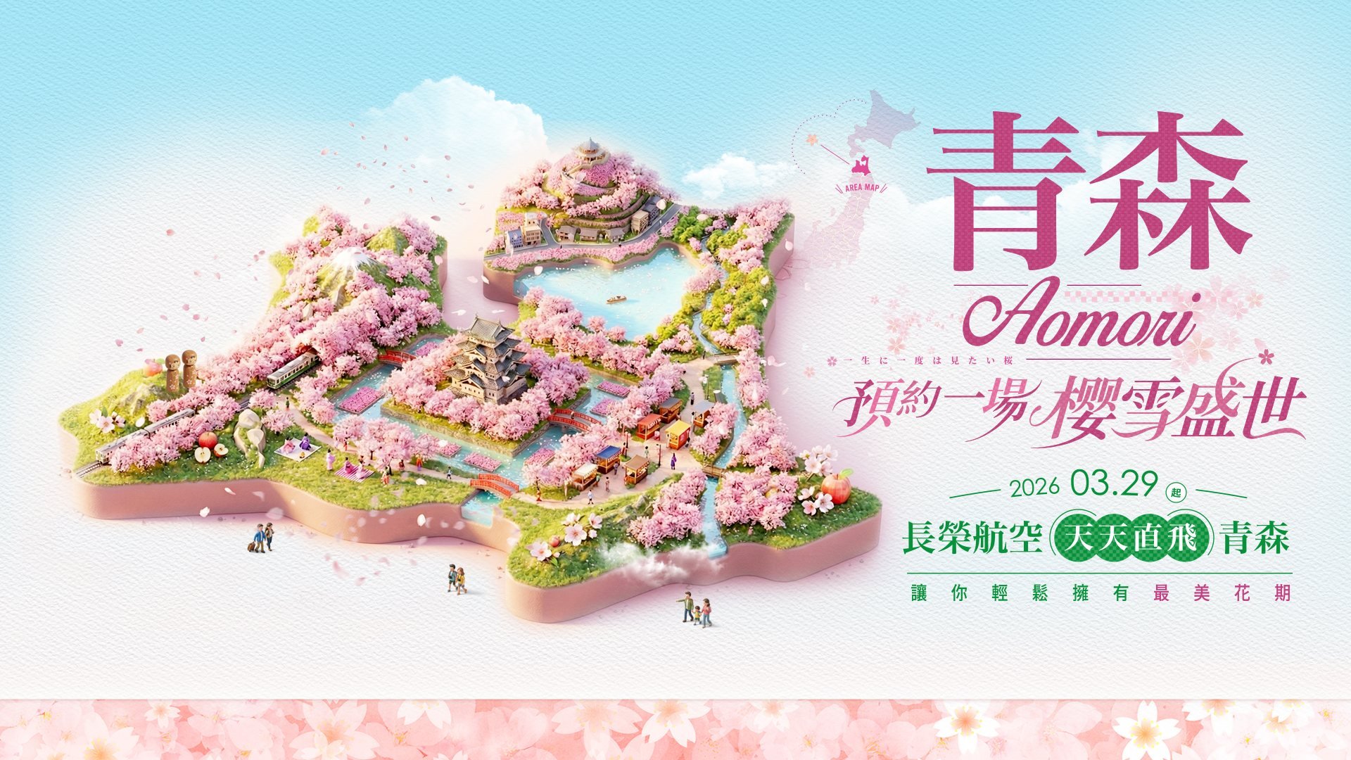 長榮航空青森航班於2026/3/29~2026/4/26及2026/6/1~2026/10/24期間,天天飛往青森,讓您感受日本東北魅力!